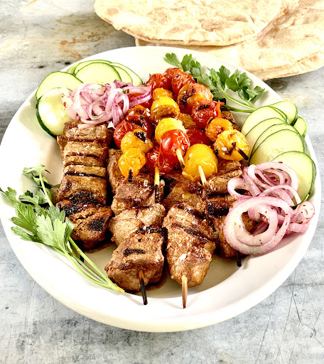 fillet of Beef stick with Lettuce tomatoes Onions